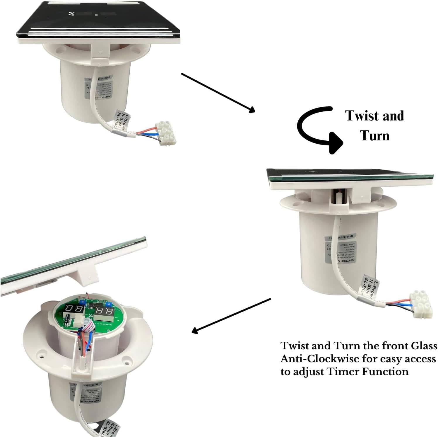 Built-in Timer Function – Adjustable delay timer ensures ventilation continues after use for complete moisture removal.