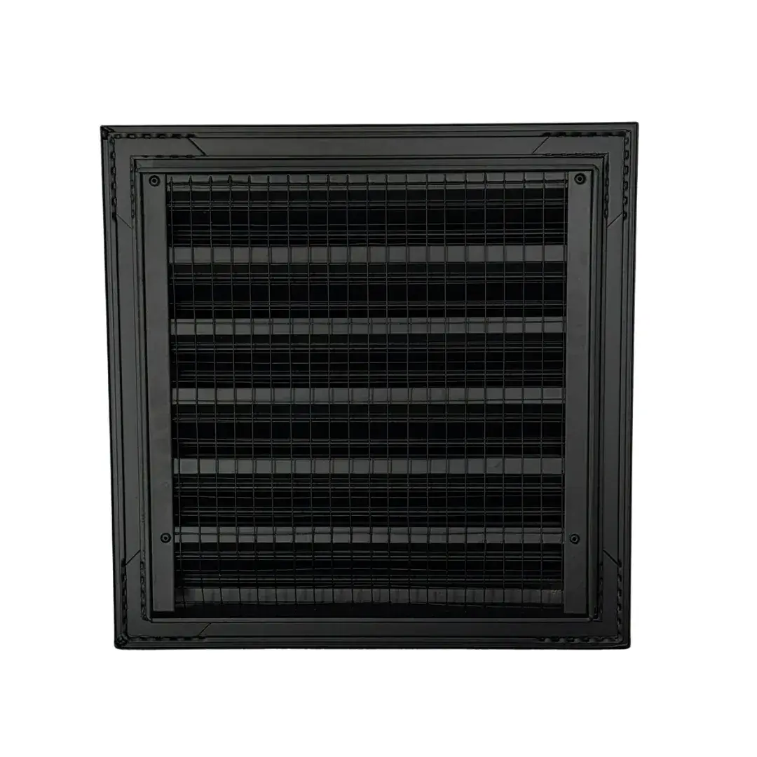Fixed Louvre Grilles, Aluminum with Screen - Anodized Aluminium Black Finish